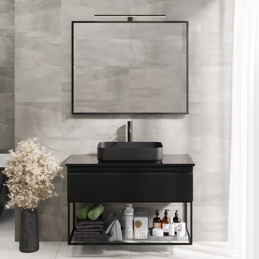 Se alle detaljerMagnor badmøbelsættet i sort træ kombinerer moderne design med funktionel opbevaring – perfekt til mindre badeværelser. Med en dybde på kun 36 cm f...