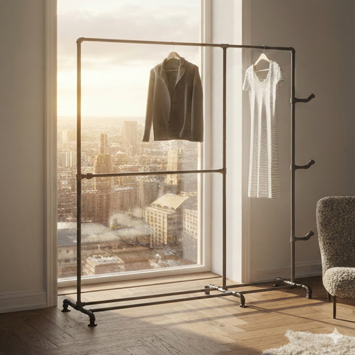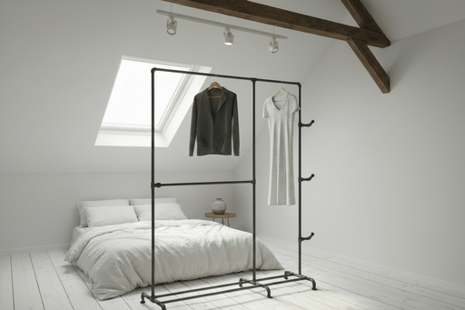 Se alle detaljerDette garderobestativ er til dem, der ønsker, at både tøjet og tøjstativet skal give rummet det rette præg. Tøjstativet er lavet af vandrør, der ti...
