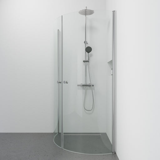 Tulsa Brusehjørne, Buet, Krom Profil, Klar Glas