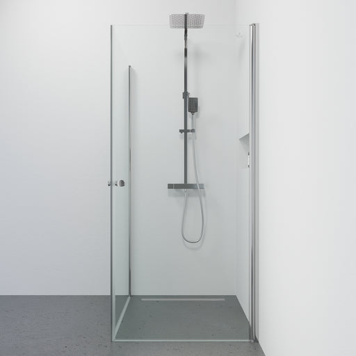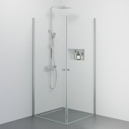 Vänern Brusedør Til Bruseniche, Børstet Aluminium Profil, Klar Glas
