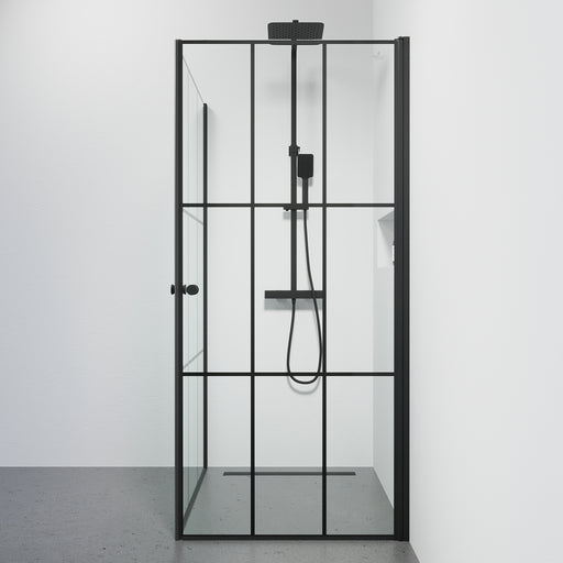 Tulsa Brusehjørne, Firkantet, Sort Profil, Klar Glas med Sprosser