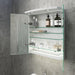 Skabet har indbygget LED lys, justerbare og børnesikre glashylder, dobbelt spejl både indvendigt og udvendigt, indbygget stikkontakt med 230 V og soft close system.