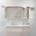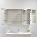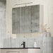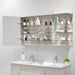 Skabet har spejldøre med soft close og indeholder fire glashylder, som er både flytbare og børnesikre.