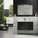 Skabet har spejldøre med soft close og indeholder fire glashylder, som er både flytbare og børnesikre.