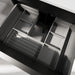 Inde i skabet finder du et praktisk opbevaringssystem med smarte rumdelere, så du nemt kan organisere dine toiletartikler og småting. Skufferne er udstyret med soft close-funktion, som sikrer en lydløs og behagelig lukning – hver gang.