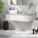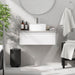 Skabet og skuffefronter er fremstillet i MDF, som er seks gange lakeret på alle sider. Dette giver en helt glat, lukket og fugtafvisende overflade – uden brug af kantbånd. Den matte hvide lakering giver et rent og tidløst udtryk, og den silkebløde finish bidrager til en følelse af kvalitet i alle detaljer.