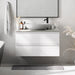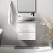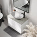 Skufferne er udstyret med soft-close funktion, som sikrer lydløs og blid lukning. Indvendigt finder du praktiske deviders, der gør det nemt at organisere dine toiletartikler og småting.