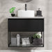 Elegantt badeværelsesskab med fritstående keramisk håndvask – Mat Sort