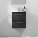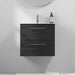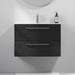 Sættet fås i to varianter – enten med to rummelige skuffer eller med praktiske døre – så du kan vælge den løsning, der passer bedst til dine behov. Begge varianter leveres med en elegant, hvid keramisk vask.