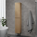 Rummeligt højskab, designet i et stilrent look, der passer til det tidløse badeværelse. Vil du skabe en rød tråd på badeværelset, kan du købe et matchende badmøbel.