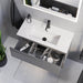 - Praktisk opbevaring: Indvendigt tilbyder skabet rummelig opbevaring til badeværelsesartikler og har et dedikeret område til vandrør og vandlås for nem installation og vedligeholdelse.
