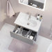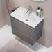 Skufferne er udstyret med en soft close-mekanisme, der sikrer en lydløs og skånsom lukning, hvilket forbedrer både komforten og holdbarheden. Indvendigt tilbyder skabet rigelig opbevaringsplads til badeværelsesartikler samt et dedikeret område til vandrør og vandlås, hvilket gør installationen enkel og hurtig.