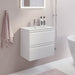 Møblet er fremstillet af holdbart melamin, som er modstandsdygtigt over for fugt og nemt at rengøre. Skabet leveres samlet og klar til nem montering på væggen – kun skuffer og håndvask skal monteres. En brugervenlig vejledning medfølger.