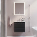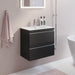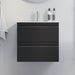 Kongsberg Mat Sort er en stilfuld og pladsbesparende løsning til små badeværelser, med en dybde på kun 36 cm. Denne variant leveres med en elegant hvid håndvask, der skaber en smuk kontrast til det sorte skab og fremhæver det minimalistiske og moderne design. Skabet har integrerede greb, som strækker sig langs hele fronten for nem og praktisk åbning.
