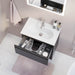 Skufferne er udstyret med en soft close-mekanisme, der sikrer en lydløs og skånsom lukning, hvilket forbedrer både komforten og holdbarheden. Indvendigt tilbyder skabet rigelig opbevaringsplads til badeværelsesartikler samt et dedikeret område til vandrør og vandlås, hvilket gør installationen enkel og hurtig.