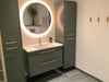 Eksklusivt badmøbel, designet i et stilrent look, der passer til det tidløse badeværelse. Har du brug for ekstra opbevaringsplads kan du tilkøbe et matchene højskab - Se vores udvalg her. Badmøbelsættet består af vaskeskab, indbygningsvask og greb.
