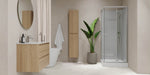 For at fuldende dit badeværelsessæt anbefaler vi også at tilføje et højt skab, som både vil øge opbevaringspladsen og elegant fuldende det samlede udtryk.