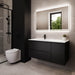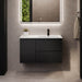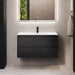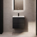 Sifjord er et elegant badeværelsesskab med moderne design, perfekt til ethvert badeværelsesmiljø. Skabet i mat sort farve tilføjer et sofistikeret og rent udseende til dit badeværelse. Det er udstyret med en hvid håndvask, der matcher den mørke farve på skabet og skaber en harmonisk kontrast.