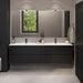 Møblerne er lavet af MDF med en mat sort finish og hvid håndvask. PU (polyurethan) lakken er meget modstandsdygtig overfor ridser, kemikalier og fugt, og er kendt for sin hårdhed og holdbarhed.