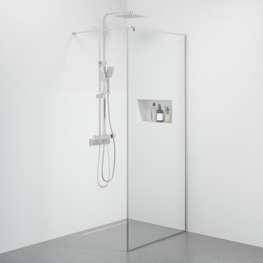 En gennemsigtig New Yorker brusevæg fremstår elegant og giver et stilet udtryk på dit badeværelse. Vi har brusevægge i hærdet, klart glas og med røget glas. Du kan vælge mellem forskellige metalprofiler, så du kan finde den, der passer ind i stilen i dit badeværelse. Vælg mellem aluminium, børstet rustfrit stål, messing, sort profil eller krom.