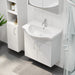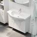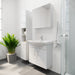 Badmøblets sider er fremstillet i melamin, og badmøblets fronter er folieret MDF.
