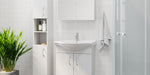 Simpelt badeværelsesmøbel der består af underskab, greb og vask. Ønsker du at supplere med et spejlskab, kan du sammensætte den ønskede størrelse med vores Idse spejlkabe. Se dem her.