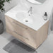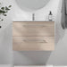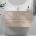 Badmøblet er lavet af finér og med en MDF-låge. PU-lakeret overflade på badmøblet sikrer, at farven ikke falmer i sollys, samtidig med at rengøring af møblet bliver nemmere.