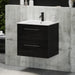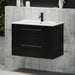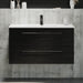 Badmøblet er lavet af finér og med en MDF-låge. PU-lakeret overflade på badmøblet sikrer, at farven ikke falmer i sollys, samtidig med at rengøring af møblet bliver nemmere.