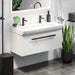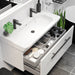 Badmøblet er desuden udstyret med integrerede soft-close skuffeskinner, som sikrer lydløs og blid lukning hver gang.