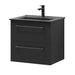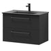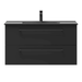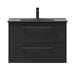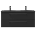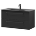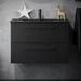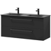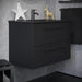 Dette elegante badeværelsesskab i mat sort leveres med en matchende sort håndvask, der tilføjer et moderne og stilrent udtryk til dit badeværelse. Skabet er udstyret med skuffer med soft-close funktion, som sikrer en lydløs og behagelig lukning. Den øverste skuffe har en praktisk inddeler (devider), så du nemt kan organisere dine toiletsager og holde orden.