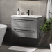 Materialer: Skabet er fremstillet af MDF med en mat grå finish og en hvid håndvask. PU (polyurethan)-lakken er yderst modstandsdygtig over for ridser, kemikalier og fugt og er kendt for sin holdbarhed og styrke.