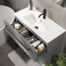 Indvendigt er der god opbevaringsplads til alle dine badeværelsesartikler samt et dedikeret område til rør og vandlås, hvilket gør installationen og vedligeholdelsen lettere.