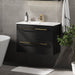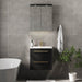 Volda er et elegant badeværelsesskab i klassisk design, perfekt til mindre badeværelser. Skabet i mat sort farve har en dybde på 36 cm, hvilket gør det ideelt til små rum. Det er udstyret med en hvid håndvask, der komplementerer den mørke farve på skabet og skaber en harmonisk kontrast.