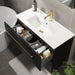 Indvendigt er der god opbevaringsplads til alle dine badeværelsesartikler samt et dedikeret område til rør og vandlås, hvilket gør installationen og vedligeholdelsen lettere.