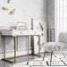 Trådløs opladningsplads på skrivebordet giver dig mulighed for at genoplade din smartphone uden besværet med ledninger. De 2 skuffer, med guldring skuffetræk, er perfekte til ekstra kontorartikler.