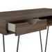 Novogratz skrivebord med den klassiske brune trækornede finish på de laminerede spånplader, med de sorte metal ben, for et retro twist.