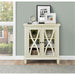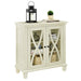 Skabet har glaslåger dækket af smukke buede X-design og 3 hylder indeni til opbevaring.