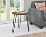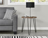 Fremstillet af tekstureret, lamineret spånplade og pulverlakerede metal hårnåleben. Placer din læselampe, mobiltelefon og fjernbetjeninger på den rummelige bordplade for at holde din stue organiseret.