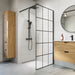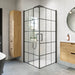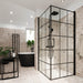 Sandefjord Brusehjørne, Dør + Væg, Sort Profil, Klar Glas med Sprosser