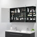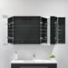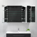 Skabet har spejldøre med soft close og indeholder fire glashylder, som er både flytbare og børnesikre.