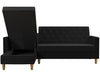 Chaiselongen kan påsættes begge sider af futonen, og det brede opbevaringsrum er perfekt til at opbevare puder og tæpper.