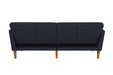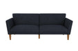 Regal Futon har en stilfuld linnedpolstring, tuftede ryg, brede vingearme og slank stil. Den konstrueret med en træramme, der giver den langvarige støtte, du har brug for i mange år fremover. Træbenene runder looket af, med ekstra ben i midten, der giver ekstra stabilitet.