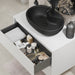 Inde i kabinettet er der rigelig opbevaringsplads til dine væsentlige ting, sammen med et specifikt udpeget område til vandrør og vandlås, hvilket sikrer nem installation og vedligeholdelse.